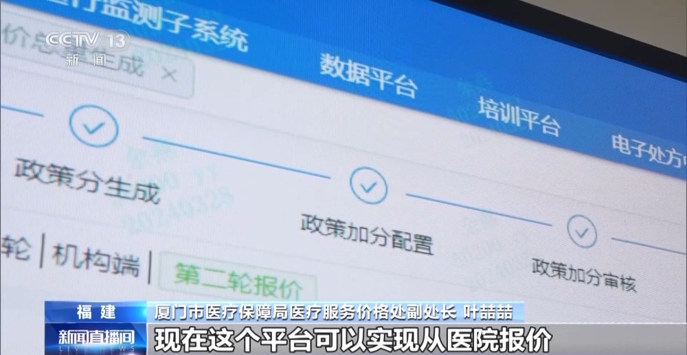 廈門市醫(yī)療保障局醫(yī)療服務(wù)價(jià)格處副處長 葉喆喆:這個(gè)平臺(tái)可以實(shí)現(xiàn)從醫(yī)院報(bào)價(jià)到項(xiàng)目經(jīng)濟(jì)分的生成,到最后方案形成的全流程,極大地提高了我們的工作效率。