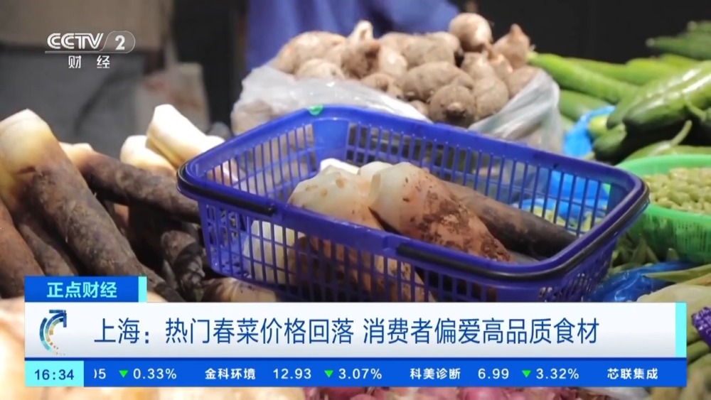 上海市普陀區(qū)某生鮮門店經理 黃春麗:春筍價格也降下來了,每斤五六元,便宜的時候每斤三四元。蠶豆現(xiàn)在是每斤五元,剛上市的時候能賣到每斤六七元,現(xiàn)在價格比較實惠。