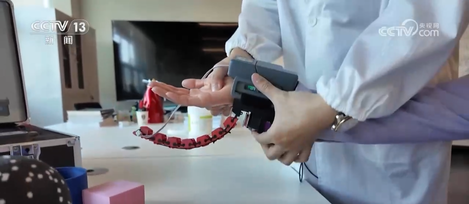 用意念控制動(dòng)作,這樣的場景不只存在于科幻電影里。眼下,“手隨心動(dòng)”已經(jīng)走進(jìn)現(xiàn)實(shí),這一切都是靠著腦機(jī)接口技術(shù),而這樣技術(shù)的奧秘就藏在這所高校的實(shí)驗(yàn)室里。走進(jìn)教學(xué)樓,記者注意到,這里有十幾個(gè)與腦機(jī)接口相關(guān)的團(tuán)隊(duì)正在進(jìn)行研究,這間實(shí)驗(yàn)室里就正在測試最新研發(fā)的“靈犀指”。記者戴上腦機(jī)帽,電腦就可以實(shí)時(shí)監(jiān)測她的腦電波,已經(jīng)裝上機(jī)械手,試一下可以用意念能不能控制這第六根機(jī)械手指?,F(xiàn)在想用“手指”去抓握這個(gè)球,好像不是很好控制。