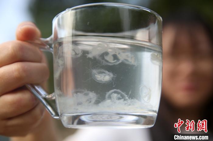 桃花水母游弋在四川省內(nèi)江市東興區(qū)平坦鎮(zhèn)姜家村蛟龍湖水庫。 蘭自濤 攝