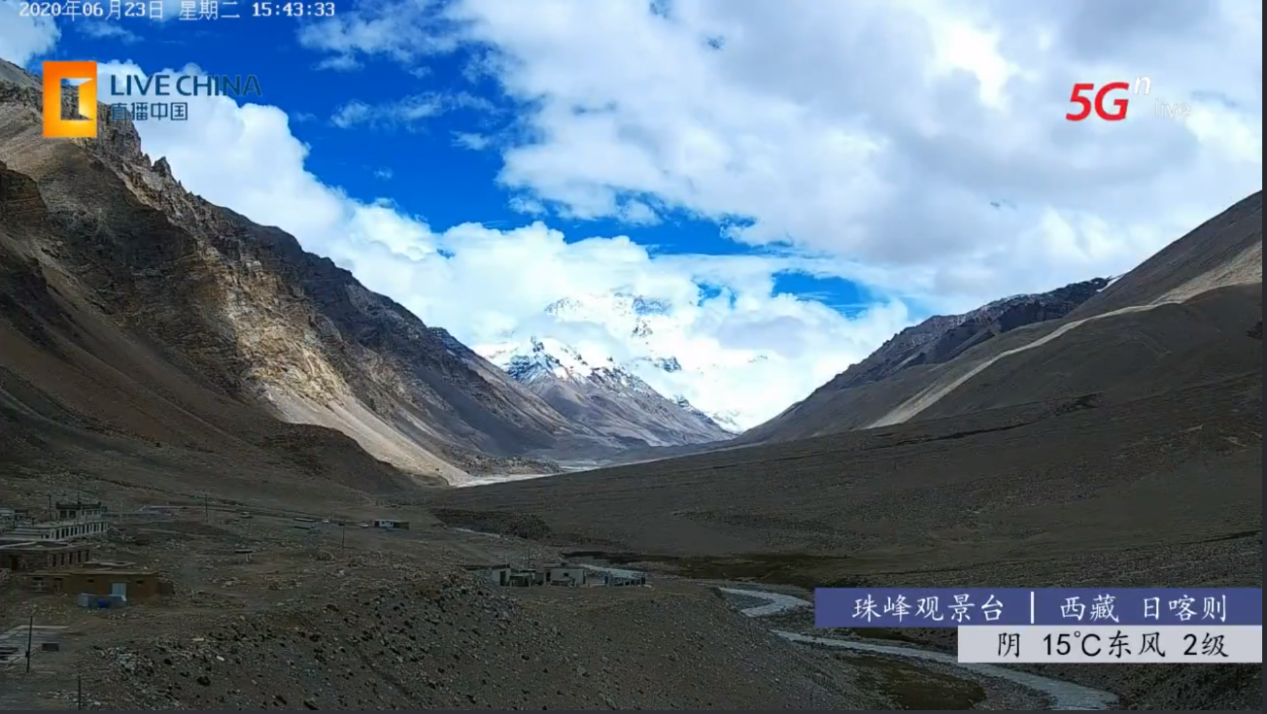 圖為中國聯(lián)通珠峰觀景臺5G直播畫面