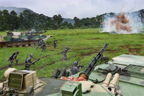 隨著三排長高博文一聲令下,4臺裝甲車猶如出山猛虎,直撲“敵”陣地。