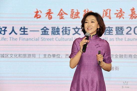 金融街街道辦事處主任徐建生,西城區(qū)文化與旅游局工會主席王來明,金融街商會秘書長、金融街書局執(zhí)行董事兼總經(jīng)理沈宏昌,中非產(chǎn)能合作基金綜合行政總監(jiān)詹旭,北京農(nóng)商銀行總行機關(guān)工會主席毛冉輝,北京百萬莊圖書大廈有限公司常務(wù)副總經(jīng)理陳強,中國少年兒童新聞出版總社《中國兒童報》副主編高慧月,北京讀書形象大使、北京金牌閱讀推廣人宸冰老師等來自近50家金融機構(gòu)及大型企業(yè)集團的近100多位閱讀愛好者到場參加了啟動儀式。隨后,北京讀書形象大使、北京金牌閱讀推廣人宸冰為現(xiàn)場嘉賓做了“閱讀成就美好人生”講座。