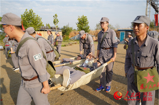 參觀結(jié)束后,學(xué)員推起獨(dú)輪車、挑起扁擔(dān),將“軍糧”送往抗戰(zhàn)一線。耳畔響起的是陳毅元帥曾說:“淮海戰(zhàn)役的勝利是老百姓用小車推出來的”。抬起受傷的“戰(zhàn)友”送往“后方”救治。一系列有感染力和實(shí)操性的軍事化體驗(yàn)教學(xué),讓黨性教育更“走心”。