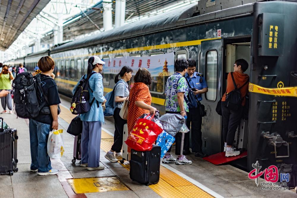 7月1日,“京藏號”旅游列車從北京西站出發(fā),450名游客開啟為期14天的旅途。中國網(wǎng)記者 鄭亮攝