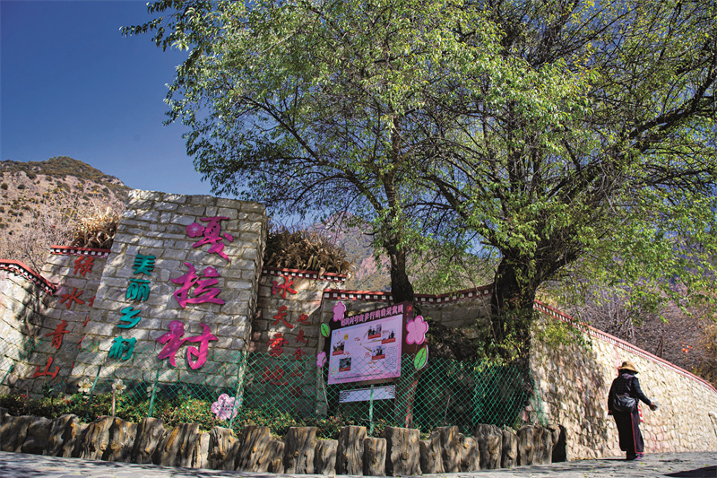 “過去的路,滿是牛糞和泥濘,一下雨根本沒法走,我的母親總是把鞋子拴腰上,赤腳走過村里的路。現(xiàn)在的嘎拉村,再也不是‘把鞋子拴腰上’的模樣了?!?/p>