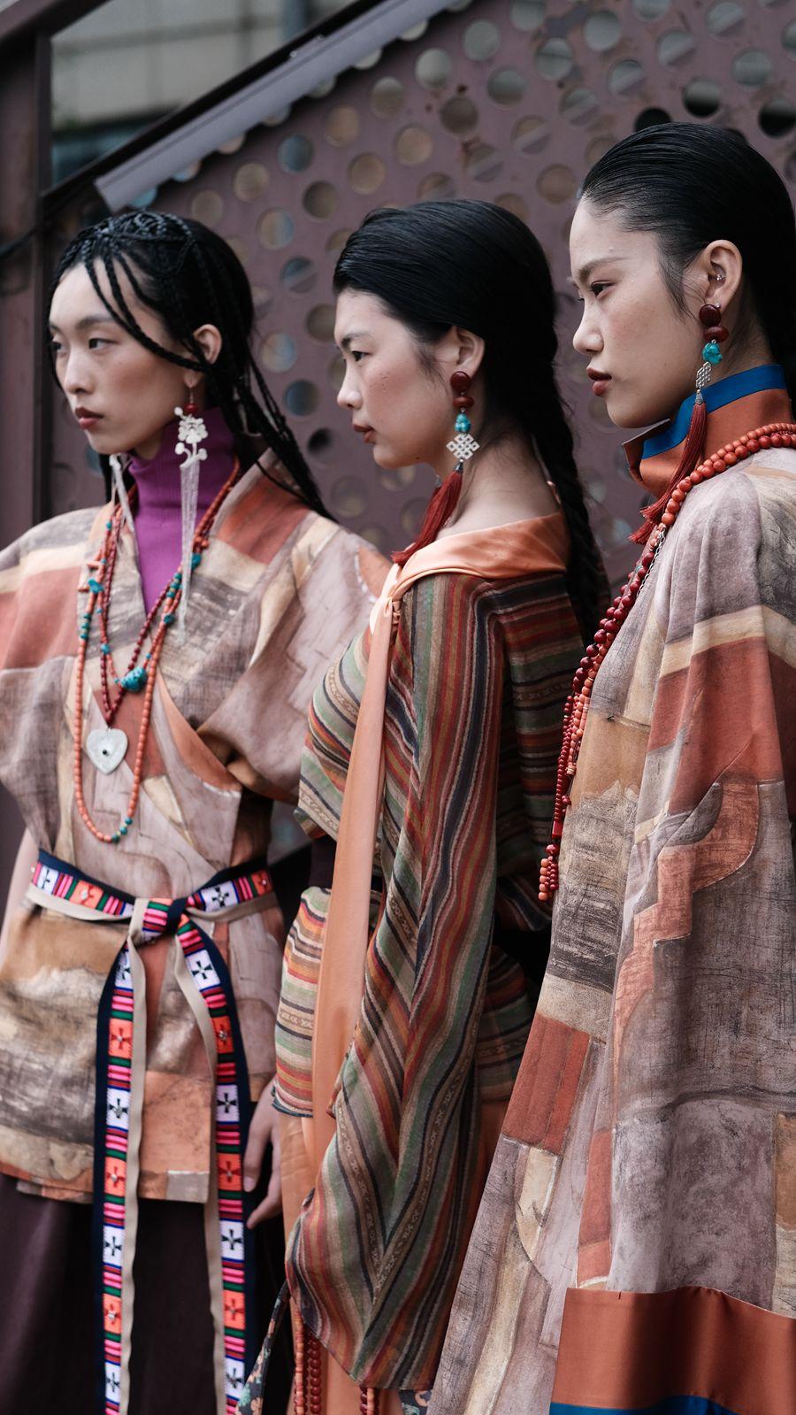 以馬乖在中國國際時裝周的發(fā)布產(chǎn)品為例,連續(xù)多季深根民族文化的傳承與創(chuàng)新,在跟隨株洲援藏工作隊進入扎囊縣后,馬乖開始深入發(fā)掘藏族服飾與時尚消費的融合創(chuàng)新,跟其他設(shè)計師借鑒少數(shù)民族元素做新產(chǎn)品的初衷不同,素白所呈現(xiàn)的新款背后是整個團隊研發(fā)的藏族非遺產(chǎn)品的動態(tài)活化過程,氆氌之鄉(xiāng)的“經(jīng)濟產(chǎn)品”是馬乖展開文化元素呈現(xiàn)后的落點,共建面料研發(fā)中心,將手工藝面料再造作為時尚服飾的亮點,研發(fā)新產(chǎn)品,提質(zhì)文化成果的經(jīng)濟轉(zhuǎn)化。觀察素白發(fā)布的往季產(chǎn)品,不難發(fā)現(xiàn),精粹歷史文化遺產(chǎn)、復(fù)興民族手工藝、打造時尚融合新品是品牌發(fā)展常態(tài),從大力發(fā)展植物染到玫瑰纖維的研發(fā)和使用,馬乖一直以設(shè)計之力、品牌影響在為消費者尋找更適合中國人自己的時尚發(fā)展模型。