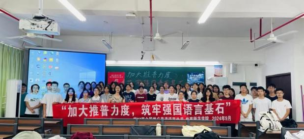 新時(shí)代教育高質(zhì)量發(fā)展的浪潮中,加強(qiáng)國家通用語言文字教育是提升國民素質(zhì)、促進(jìn)文化認(rèn)同、推動(dòng)社會(huì)進(jìn)步的重要基石。嶺南師范學(xué)院積極響應(yīng)國家關(guān)于加強(qiáng)國家通用語言文字推廣普及的號(hào)召,圍繞“加大推普力度,筑牢強(qiáng)國語言基石”第27屆全國推普周主題,依托學(xué)校《教師語言》課程組,成功舉辦了一系列豐富多彩、特色鮮明的語言文化活動(dòng),不僅彰顯了學(xué)院在師范教育領(lǐng)域的深厚底蘊(yùn)與創(chuàng)新活力,更為國家語言文字建設(shè)和教育強(qiáng)國戰(zhàn)略貢獻(xiàn)了重要力量。