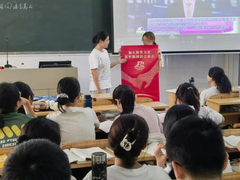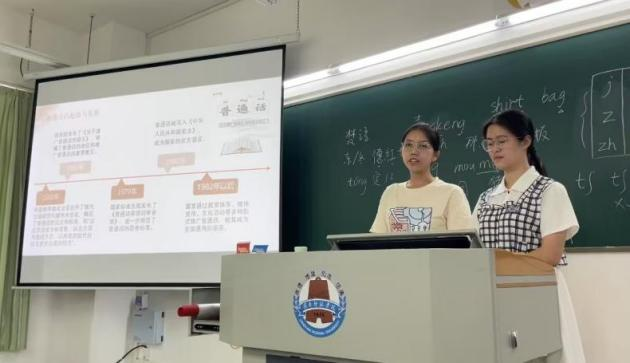 新學(xué)期伊始,《教師語言》課程教學(xué)團(tuán)隊(duì)將推普宣傳與課程的“音韻筑基”內(nèi)容相結(jié)合,理論層面講解我國通用語言文字的相關(guān)法律政策和普通話聲、韻、調(diào)等基礎(chǔ)知識(shí);實(shí)踐層面指導(dǎo)學(xué)生利用中國語言文字?jǐn)?shù)字博物館、師圈小程序等課程資源進(jìn)行學(xué)習(xí),邀請學(xué)生介紹普通話的發(fā)展歷程和我國第27屆推普宣傳主題中所滲透的“強(qiáng)國必須強(qiáng)語,強(qiáng)語助力強(qiáng)國”價(jià)值內(nèi)涵。
