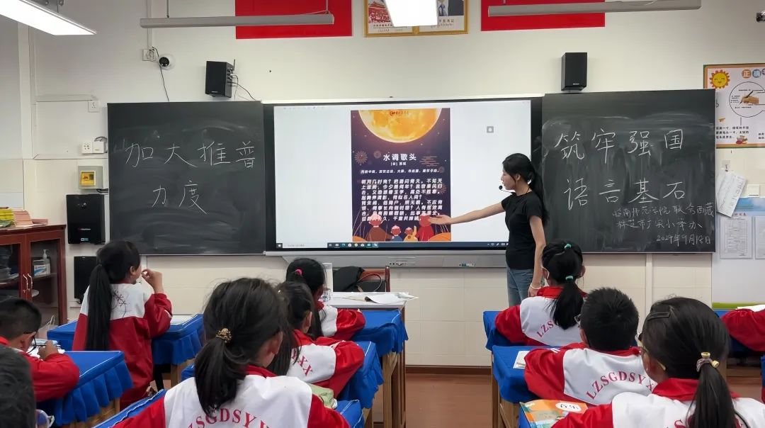 21級(jí)援藏實(shí)習(xí)生張嘉怡在林芝市實(shí)驗(yàn)小學(xué)帶領(lǐng)學(xué)生進(jìn)行古詩詞誦讀活動(dòng),促進(jìn)了藏區(qū)學(xué)生普通話水平的提升,通過《水調(diào)歌頭·明月幾時(shí)有》的師生共同誦讀,搭建起漢藏文化交流的橋梁,增進(jìn)了民族團(tuán)結(jié)與理解。