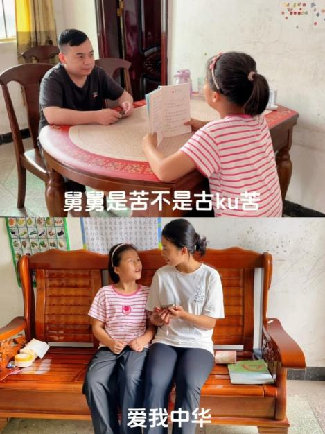 20級(jí)畢業(yè)生龍?jiān)刺煸谇暹h(yuǎn)市連州市龍坪鎮(zhèn)中心小學(xué)進(jìn)行推普創(chuàng)新實(shí)踐,指導(dǎo)學(xué)生借助手勢舞誦讀《古朗月行》,并將推普工作與家庭教育緊密結(jié)合,策劃與指導(dǎo)“普通話進(jìn)家庭”活動(dòng)。小朋友們化身為普通話小老師,糾正家長的發(fā)音,與家長共同學(xué)習(xí)、共同進(jìn)步,提高了家長們的語言規(guī)范意識(shí);親子同唱《愛我中華》經(jīng)典歌曲,讓推普成為家庭文化的一部分,家庭成員之間的情感得以加深,更在孩子們心中種下了愛國愛家的種子。