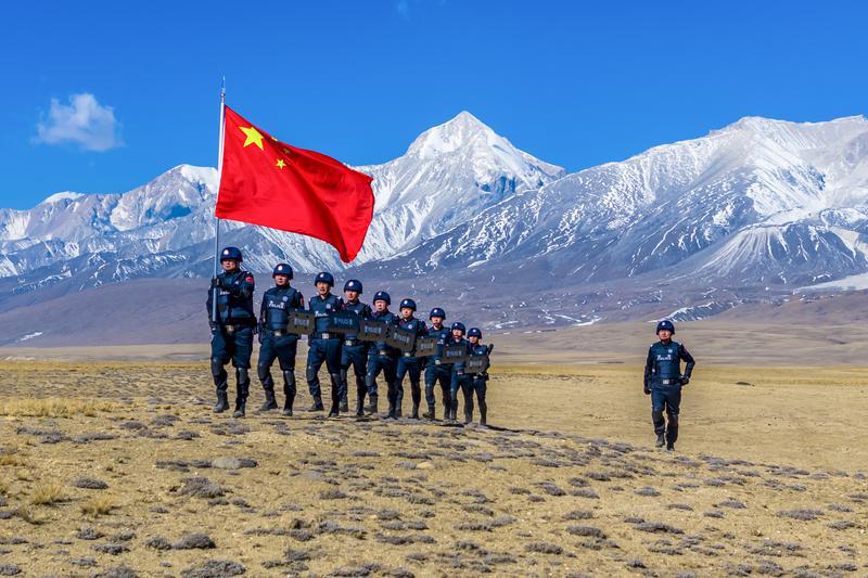 里孜出入境邊防檢查站駐地海拔4772米,是西藏海拔最高的出入境邊防檢查站。圖為2024年4月8日,里孜邊檢站民警在進(jìn)行“兩翼”巡邏。記者 楊子彥 攝