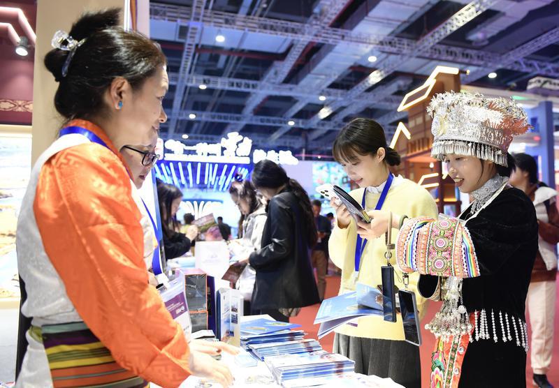圖為11月22日,自治區(qū)文旅廳率團(tuán)參加在上海舉行的2024年中國國際旅游交易會。圖為交易會現(xiàn)場。記者 旦增蘭澤 攝