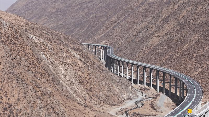 12月18日,西藏S5線拉薩至澤當(dāng)快速公路正式通車試運營。圖為拉薩至澤當(dāng)快速公路俯瞰圖。記者 洛桑平措