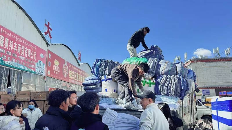 立馬行動(dòng)起來!他們自籌資金,陳軍亮還聯(lián)系到一些戰(zhàn)友,共同集資采購救災(zāi)物品。作為公益機(jī)構(gòu)負(fù)責(zé)人,王順利和她的小伙伴,第一時(shí)間買了從西安轉(zhuǎn)機(jī)飛往拉薩的機(jī)票,并在路上聯(lián)絡(luò)西藏的伙伴,采購物資足足裝了3卡車,共30多噸,價(jià)值超過40萬元,緊急運(yùn)輸發(fā)往定日。