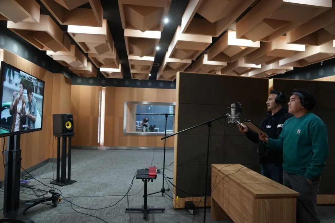 青海省民族語(yǔ)影視譯制中心的配音演員正在為影視劇配音。