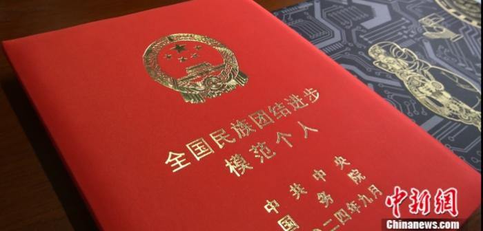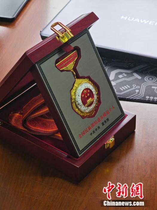 圖為孫樹學(xué)榮獲的全國(guó)民族團(tuán)結(jié)進(jìn)步模范個(gè)人獎(jiǎng)?wù)?中新網(wǎng) 薛凌橋 攝