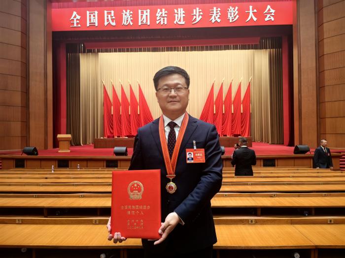 圖為孫樹學(xué)出席全國(guó)民族團(tuán)結(jié)進(jìn)步表彰大會(huì)。受訪者供圖