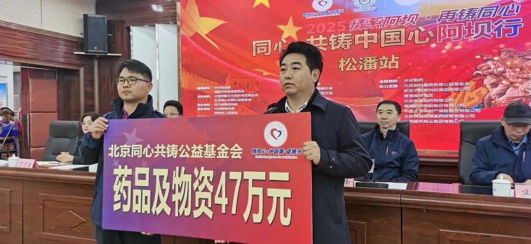 活動(dòng)現(xiàn)場(chǎng),“同心·共鑄中國(guó)心”組委會(huì)向松潘縣捐贈(zèng)了價(jià)值47萬元的藥品及物資,為當(dāng)?shù)蒯t(yī)療資源注入新的力量。這些藥品將在后續(xù)醫(yī)療服務(wù)中發(fā)揮重要作用,幫助更多患者減輕病痛。捐贈(zèng)儀式后,何建華莊重地為“同心·共鑄中國(guó)心”組委會(huì)專家團(tuán)授旗,并宣布“同心·共鑄中國(guó)心”2025年阿壩行(松潘站)大型醫(yī)療公益活動(dòng)正式啟動(dòng)?,F(xiàn)場(chǎng)響起熱烈掌聲,承載著對(duì)此次公益活動(dòng)的美好期待。