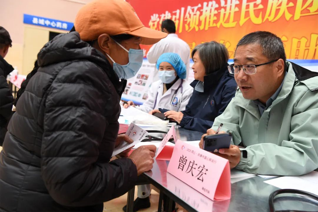 “我來檢查一下身體。前兩天看了這個(gè)活動(dòng)的預(yù)告,然后我們就來了。這是北京的醫(yī)生在給我們講解,每個(gè)科室都很認(rèn)真地跟我們說,有啥子病就給我們看。很細(xì)心,謝謝對(duì)我們的關(guān)心?!彼膳巳罕娏_敏眼中滿是感激。