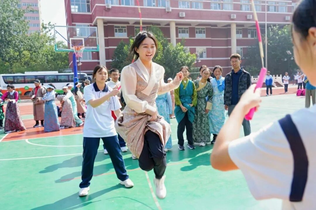 2025年9月24日,拉薩北京實(shí)驗(yàn)中學(xué)學(xué)生在北京與豐臺(tái)區(qū)太平橋?qū)W校學(xué)生同上一堂花樣跳繩課。 拉薩北京實(shí)驗(yàn)中學(xué)供圖