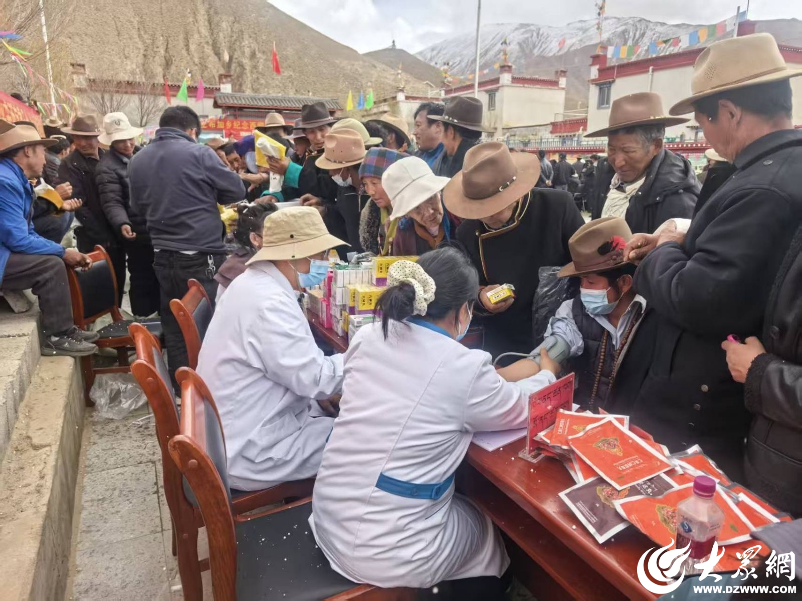3月27日,義診現(xiàn)場突降冰雹,氣溫驟降,寒風(fēng)刺骨。面對惡劣天氣,濰坊援藏醫(yī)療隊沒有一人退縮。大家迅速用身體護(hù)住醫(yī)療設(shè)備和藥品,將行動不便的老人護(hù)送至安全區(qū)域,在風(fēng)雪中堅持完成全部診療服務(wù)。當(dāng)天累計服務(wù)群眾百余名,發(fā)放常用藥物200余盒。