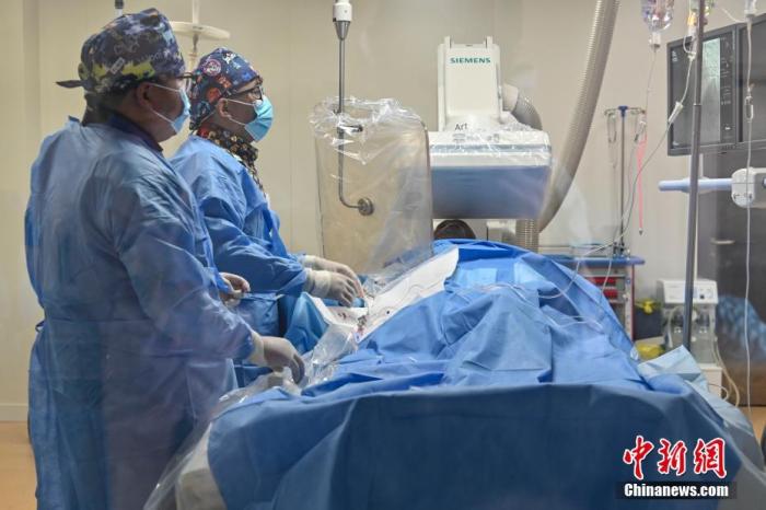 圖為2020年12月22日,西藏林芝市人民醫(yī)院的介入手術(shù)室里,心內(nèi)科醫(yī)生普布扎西(左二)為一名冠心病患者進(jìn)行冠狀動脈造影及支架植入術(shù)。 中新社記者 陳驥旻 攝