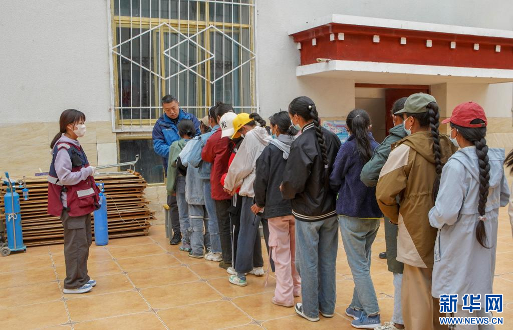 4日上午,在那曲市色尼區(qū)尼瑪鄉(xiāng)小學(xué)學(xué)生宿舍一樓大廳,學(xué)生們齊刷刷排成隊等待做心臟聽診。“聽診有問題的同學(xué),由老師帶去做心臟彩超?!鳖I(lǐng)隊醫(yī)生耿直一邊吸氧一邊聽診。