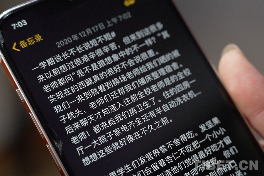 當吳穎琦被問到為什么再次選擇西藏,我看見了她眼里充滿的熱愛和期待?!拔移鋵嵰舱f不清楚為什么想留下,只是如果不這么做,我怕自己會遺憾,總覺得還能為這片土地做更多?!边@是她手機備忘錄里的一句話。