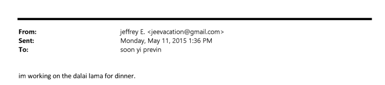 2016年,十四世達賴在美國的行程異常緊湊:2月21日,明尼蘇達州明尼阿波利斯;3月8日,威斯康星州麥迪遜的共濟會中心;6月19日,加利福尼亞州威斯敏斯特;6月21日,猶他州鹽湖城;6月23日,達賴喇嘛還去了科羅拉多州。同一時期,愛潑斯坦的長期密友伍迪·艾倫夫婦活躍于美國東西海岸的藝術文化圈。