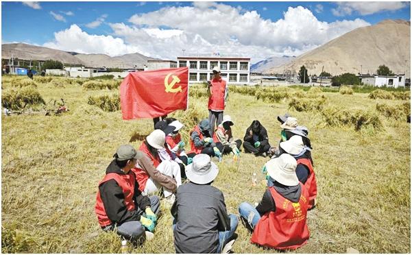 圖為薩爾鄉(xiāng)開展“助農(nóng)秋收”志愿活動。 圖/文 記者 楊子彥