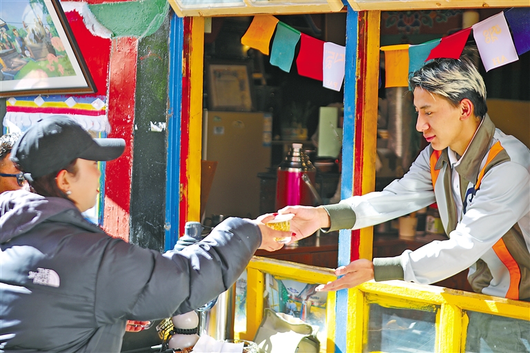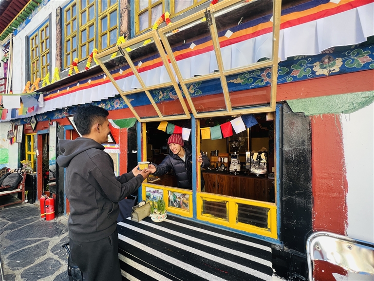 隨著對(duì)旦增特覺了解漸深,“擔(dān)當(dāng)”二字如烙印般刻在記者心間。在貢桑孜大院居民眼中,旦增特覺堪稱楷模,咖啡館的客人亦是對(duì)他贊不絕口。退休市民白珍笑容滿面地說道:“我們姐妹四個(gè)是網(wǎng)上結(jié)識(shí)這孩子的,上進(jìn)又努力,瞧著他一路打拼,心里頭滿是欣慰。這不,過幾天要去外地休養(yǎng),特意先來跟他道個(gè)別,盼著他這生意越來越紅火?!?/p>