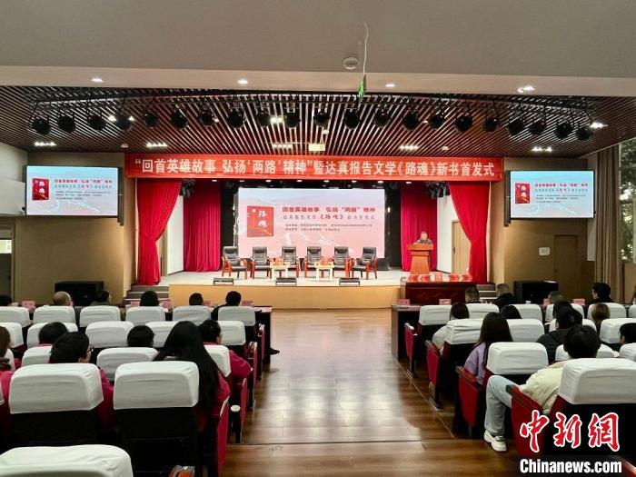 圖為報(bào)告文學(xué)《路魂》新書首發(fā)式現(xiàn)場?!√斓爻霭嫔?供圖