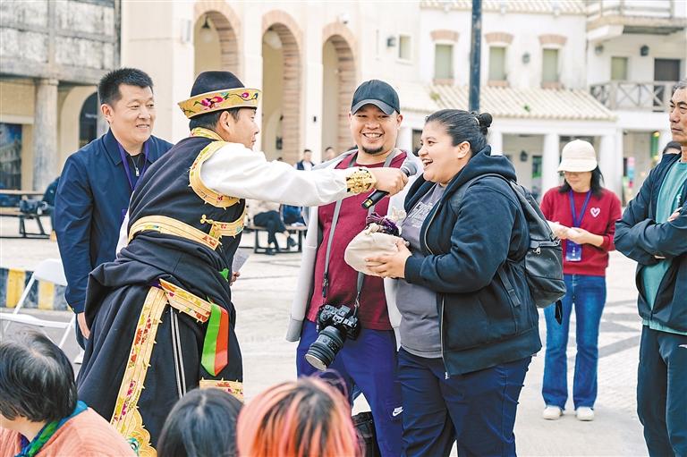 近日,林芝市非遺傳承人、青年企業(yè)家和青少年學生代表組團赴澳門特別行政區(qū)開展“石榴籽一家親”林芝非遺展演交流活動。在澳門青年展藝協會和澳門大學,與澳門文創(chuàng)青年代表進行交流,學習非遺創(chuàng)新發(fā)展經驗;在澳門漁人碼頭表演非遺舞蹈《米納羌姆》、工布扎念博咚彈唱《達姆韻》等節(jié)目,展現林芝的文化魅力。