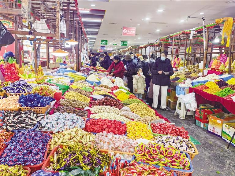 “八廓商城將年貨商家集中在一起,商戶們無需再風吹日曬,還能免費使用攤位?!睆姲痛稳收f,“為了保障商場內(nèi)的衛(wèi)生和安全,保潔人員定時打掃衛(wèi)生,工作人員定時巡邏,全面排查各類安全隱患,既方便了商戶,也方便了老百姓?!?/p>