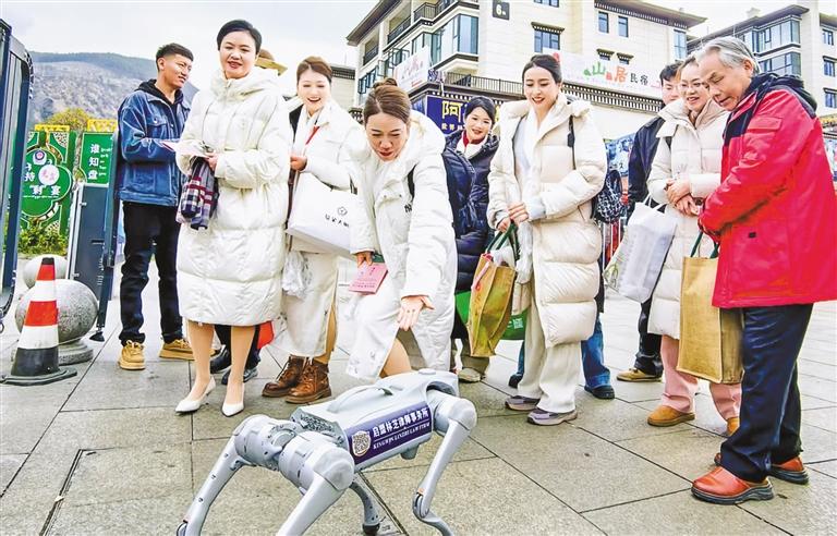 據(jù)了解,林芝市啟用銀灰色人工智能機(jī)器狗GO2作為移動普法載體,搭載自主巡航、動態(tài)避障等6項智能功能,在工布天街商圈開展全天候動態(tài)巡游。機(jī)器狗背部印制民法典專題二維碼矩陣,同步連接“法治林芝”抖音號、“林芝司法為民”微信公眾號、林芝掌上12348平臺等4個線上端口,實現(xiàn)群眾學(xué)法“碼上達(dá)”,迅速觸及案例解析、法律問答、維權(quán)指引等9類服務(wù)模塊。