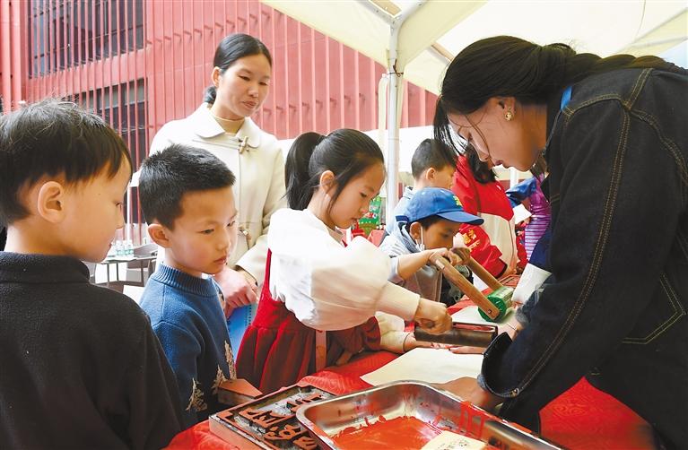 在西藏牦牛博物館,小朋友體驗(yàn)雕版拓印技藝。記者 旦增蘭澤 攝