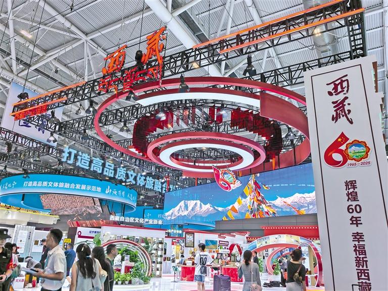 從2006年首次參展時(shí)以特色農(nóng)產(chǎn)品為主,到如今的文化創(chuàng)意產(chǎn)品多元展示、科技賦能,西藏館的展示內(nèi)容不僅透出強(qiáng)勁的融合力與創(chuàng)新力,更是西藏文化產(chǎn)業(yè)演進(jìn)的生動(dòng)縮影。