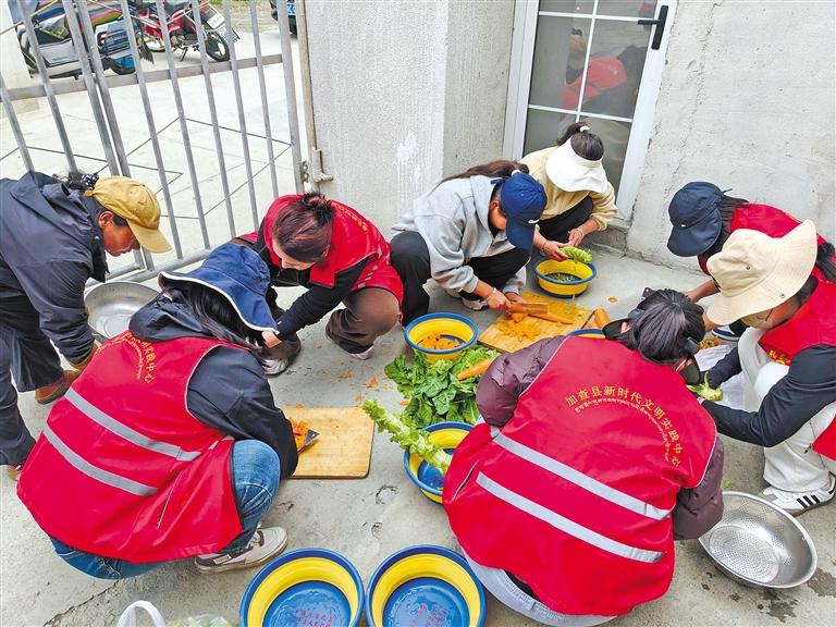 夏日的雅魯藏布江中游,碧水如緞,潺潺流水輕吻著岸邊碎石。位于江畔的山南市加查縣拉綏鄉(xiāng)棍追巴村委會(huì)小院里,鐵鍋支在土灶上“咕嘟咕嘟”地冒著熱氣,乳白的牛肉湯翻滾著,大塊的牛腩在湯中浮沉,胡蘿卜絲、土豆塊吸飽了湯汁,脹鼓鼓地透著香甜。