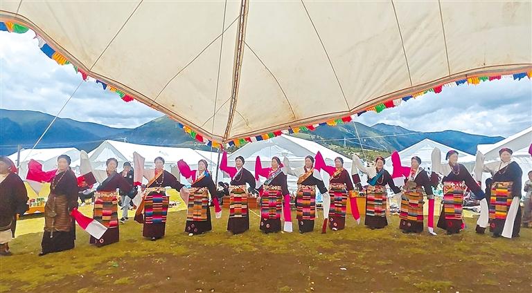 “我們村的‘耍壩子’活動是當(dāng)?shù)貍鹘y(tǒng)民俗活動,不僅是群眾放松身心、凝聚社群力量的重要方式,更是展示傳統(tǒng)文化、推動鄉(xiāng)村振興的鮮活載體?!蔽魉韶暣羼v村專干澤仁珍瑪告訴記者,活動期間,除安排最常見的歌舞節(jié)目外,還穿插有跑步、翻桶接力賽等競技項目,由于群眾參與度高,現(xiàn)場十分熱鬧。