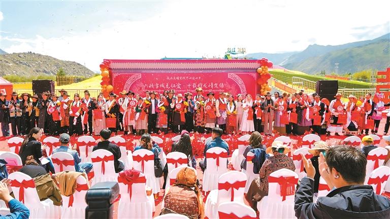 今年是西藏自治區(qū)成立60周年和堆龍德慶區(qū)撤縣設(shè)區(qū)10周年。近日,拉薩市堆龍德慶區(qū)舉辦“六秩雪域見證愛·十載堆龍情定緣”集體婚禮盛典活動。60位新人在眾人的見證下完成了婚禮,共同開啟幸福生活篇章。
