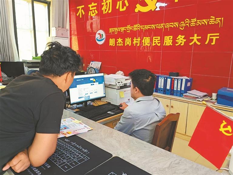 圖為墨脫縣朗杰崗村便民服務(wù)大廳工作人員在為群眾辦理宅基地分割登記審批。通訊員 牛佳瓊 攝