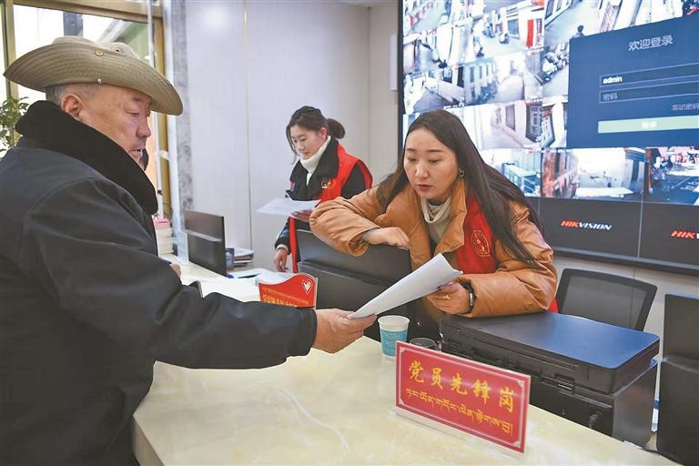 圖為拉薩市城關區(qū)策門林社區(qū)服務大廳工作人員為社區(qū)群眾服務。記者 唐斌 攝