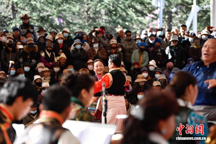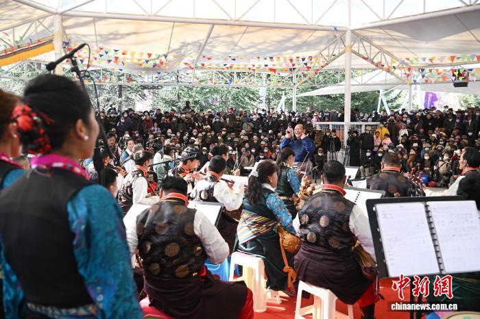 12月20日,為熱烈慶祝西藏自治區(qū)成立60周年,由西藏自治區(qū)文化和旅游廳主辦的格桑花演出季——迎新年“我們的節(jié)日 群星薈萃”群眾音樂會在拉薩宗角祿康公園精彩上演。音樂會節(jié)目豐富多樣,涵蓋民樂合奏、少兒藏戲、獨(dú)唱重唱等多種形式。傳統(tǒng)韻味與時代氣息交融,各族群眾以歡歌贊頌發(fā)展巨變,共迎美好新年。圖為群眾音樂會現(xiàn)場。中新社記者 貢嘎來松 攝