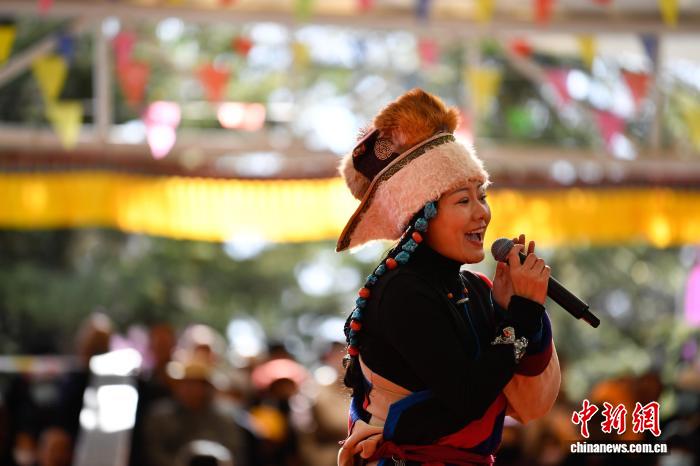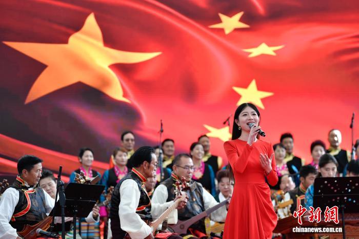 圖為群眾音樂會獨(dú)唱《祝福祖國》。中新社記者 貢嘎來松 攝