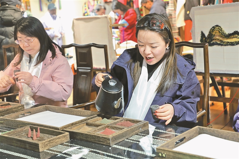 游客們走進(jìn)雍布拉康與昌珠寺,探尋西藏第一座宮殿的深厚歷史底蘊(yùn),欣賞巧奪天工的藏式建筑藝術(shù)。在“雅礱里”文化藝術(shù)街區(qū)非遺展館,傳統(tǒng)編織、唐卡繪畫、藏文書法、民族服飾等非遺技藝與文創(chuàng)精品集中亮相,吸引了眾多游客駐足體驗。