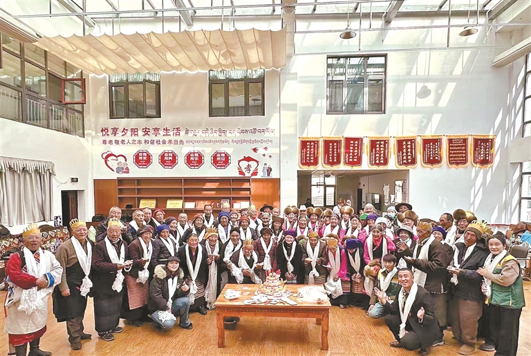 圖為老人們在古榮鎮(zhèn)老年人日間照料中心集體過生日。記者 央金 攝