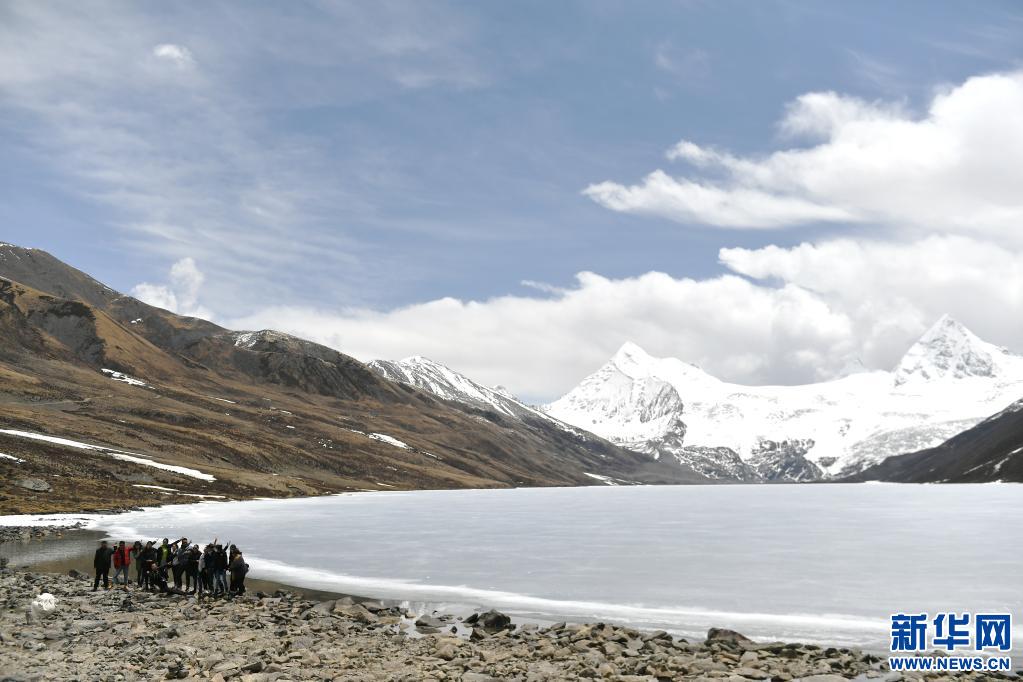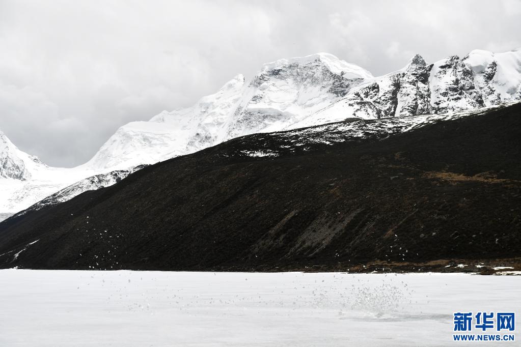 一陣強(qiáng)風(fēng)掠過薩普雪山腳下的冰湖時(shí)卷起湖面的薄冰(5月4日攝)。新華社記者 孫瑞博 攝