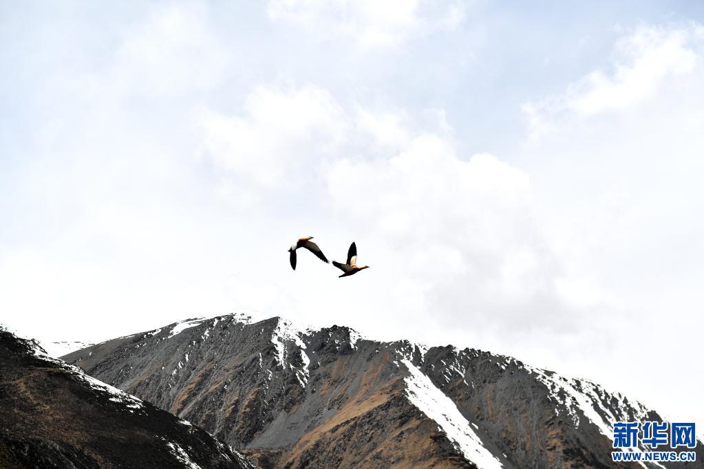 這是5月4日在那曲市比如縣境內(nèi)拍攝的薩普雪山附近的飛鳥。新華社記者 孫瑞博 攝