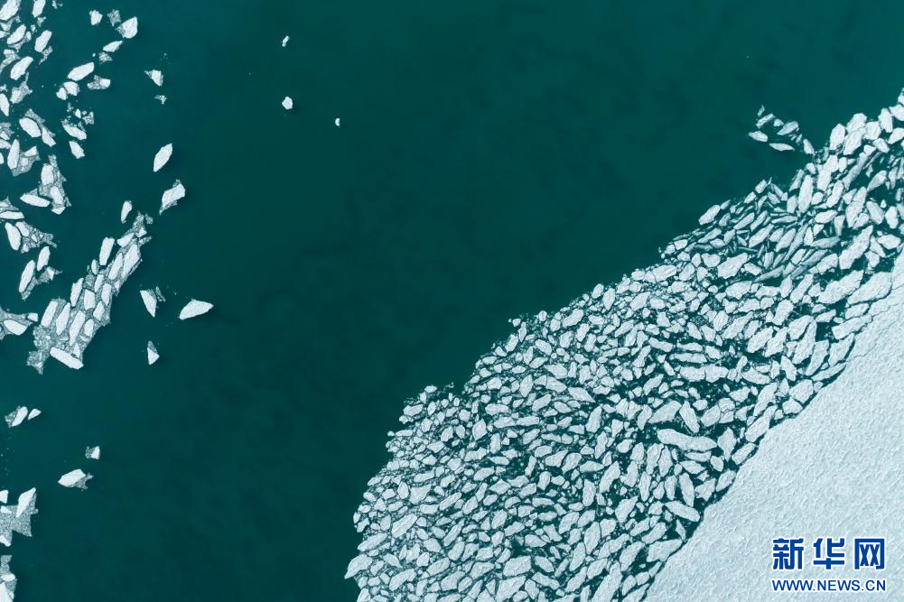 1月29日拍攝的瑪旁雍錯(cuò)湖面上的冰堆積在一起,呈現(xiàn)出各式各樣的造型(無(wú)人機(jī)照片)。新華網(wǎng) 旦增努布 攝